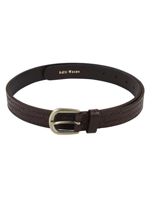 Aditi Wasan Brown Genuine Leather Basket Weave Embossed Ladies Belt