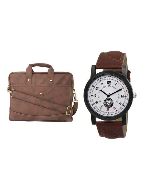 adk analog watch and leatherette laptop bags combo