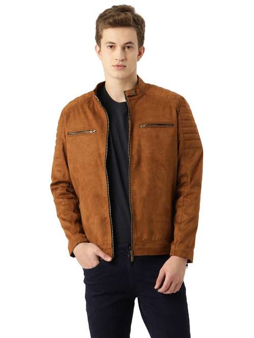 - » men solid long sleeved biker jacket