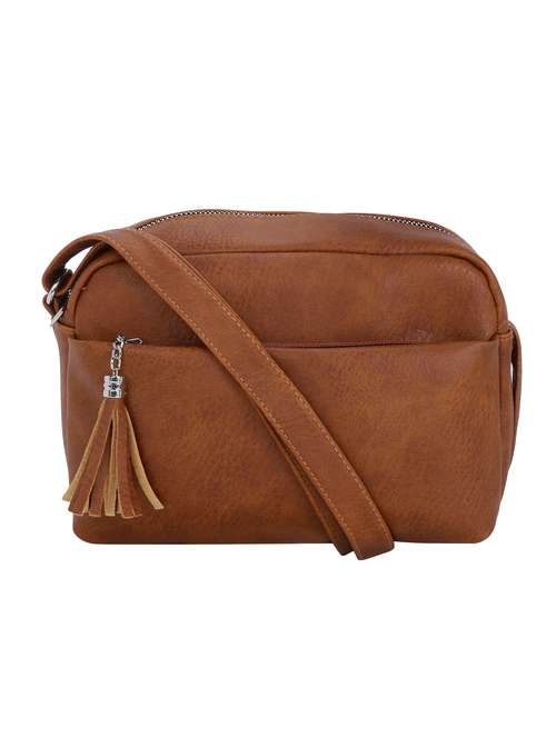 - » brown leatherette (pu) sling bag