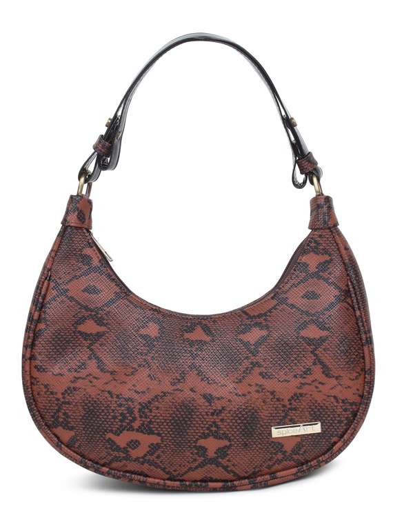 Ultra-trendy, this half-moon bag with curved lines is made of high quality snake printed PU. Its Leatheritte handle allows it to be carried under the shoulder for better comfort and gives it a retro chic style. This croissant-shaped bag has a top zipper and a Gold finish on the metal parts. It is available in black&white, Brown & Tan. The Latest Stylish Mini Handbag boasts enough space to hold your mobile, lipstick, sunglasses, Wallet, Passport , and cards. Very Convienent & Modern.