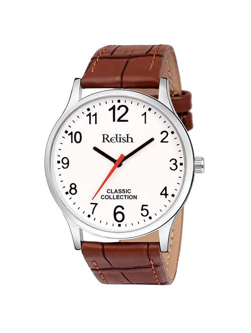 relish analog number dial leather strap watch for men