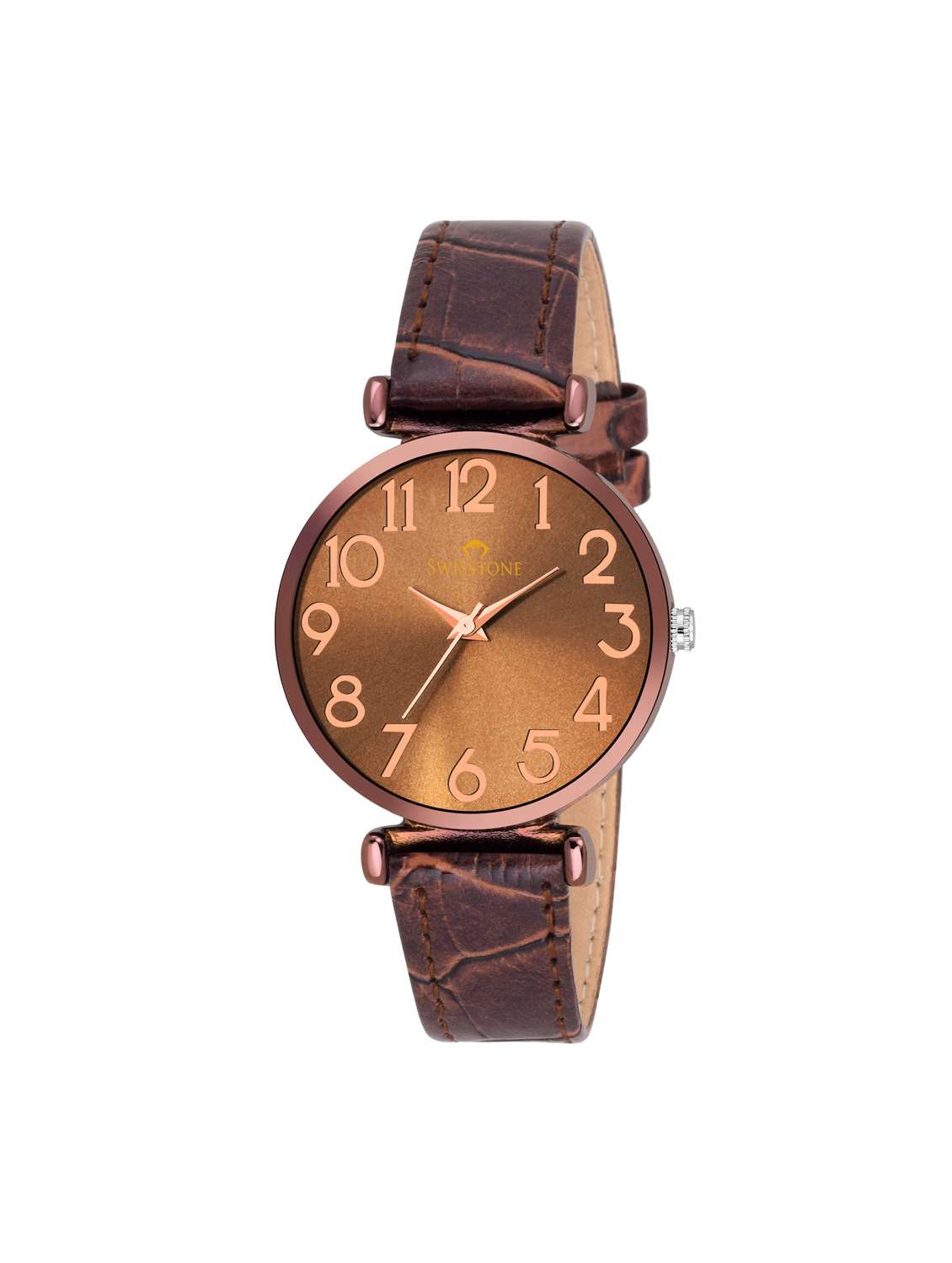 SWISSTONE CK301-BRWN Brown Leather Strap Wrist Watch for Women