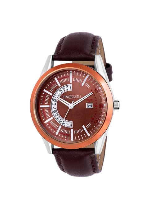 - » timesmith brown dial brown leather analog watch for men tsc-106