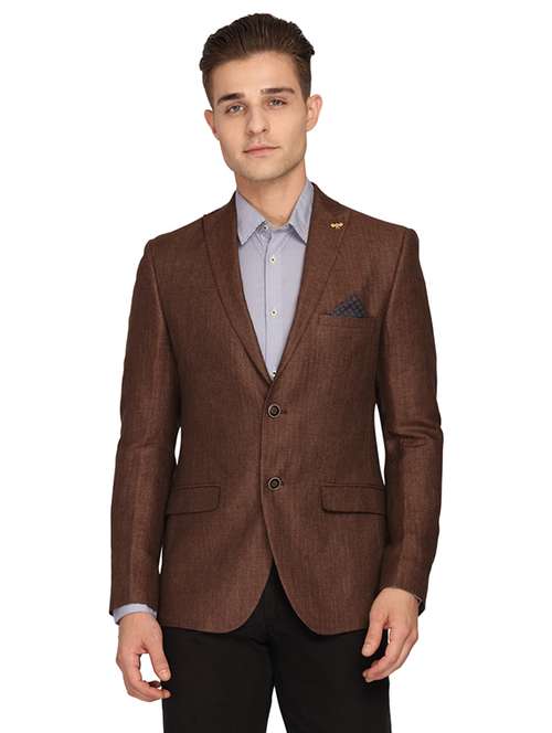 - » brown solid linen single breasted casual blazer