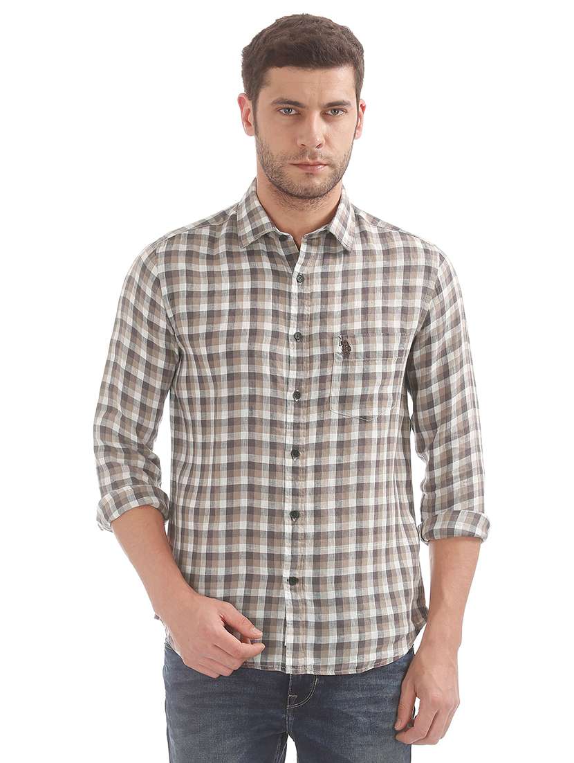 brown checkered casual shirt