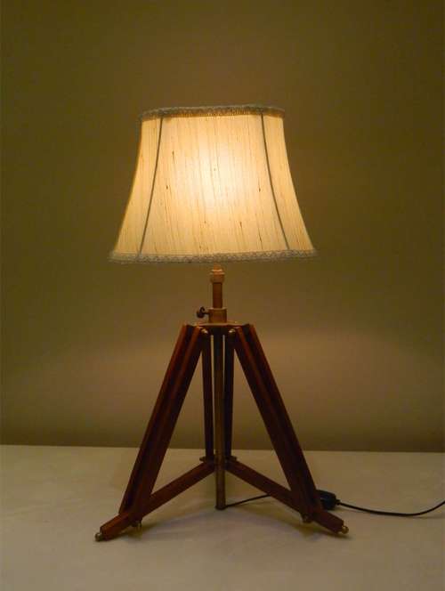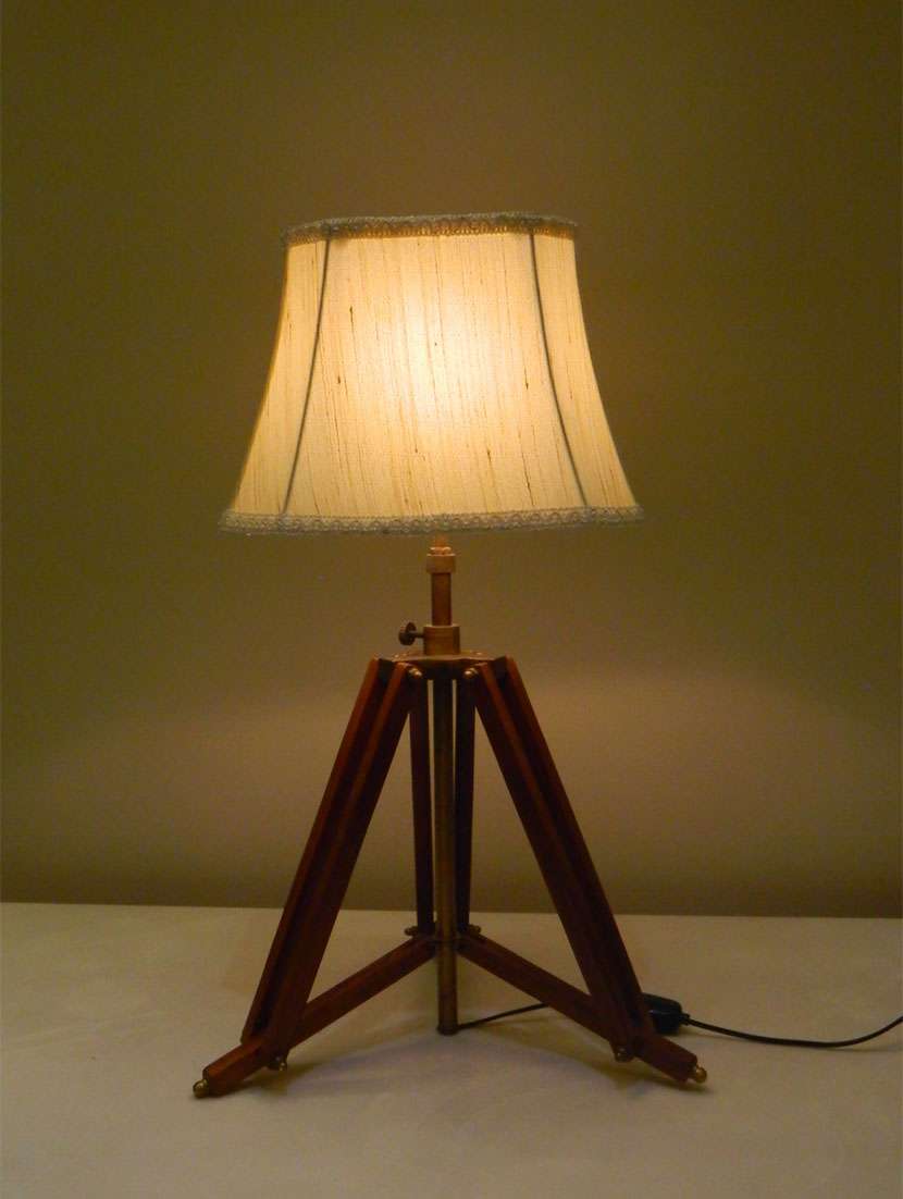 tripod table lamp in mango wood with fabric shade