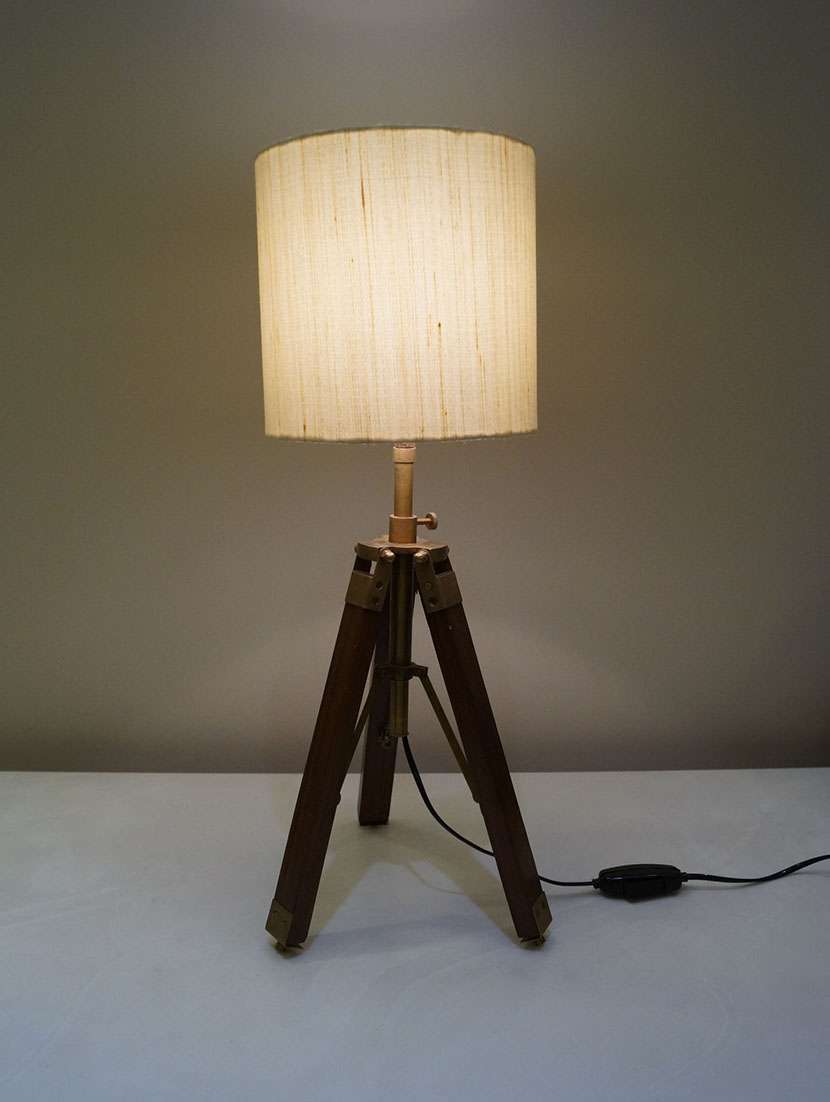 tripod table lamp in mango wood with fabric shade