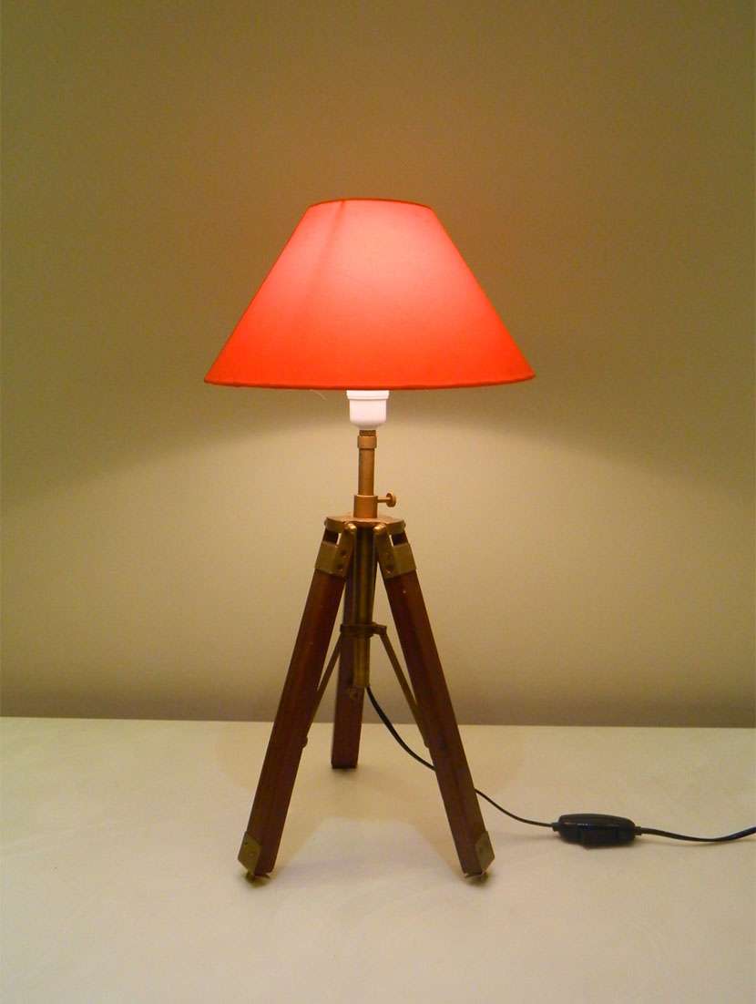 tripod table lamp in mango wood with fabric shade