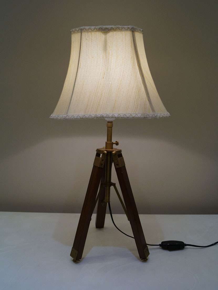 - » tripod table lamp in mango wood with fabric shade