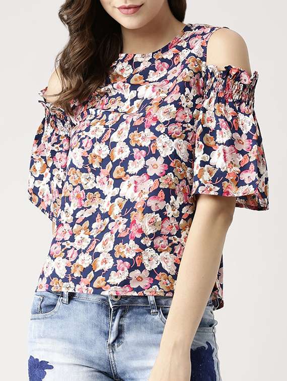smocked cold shoulder floral top