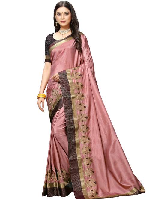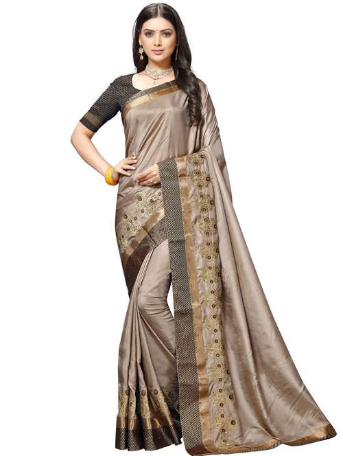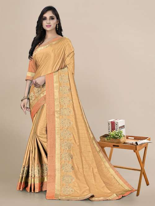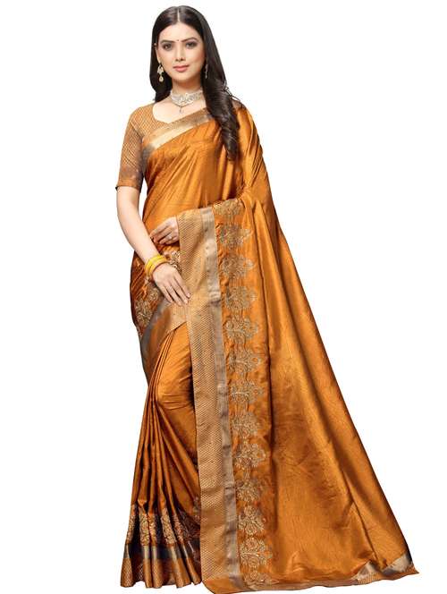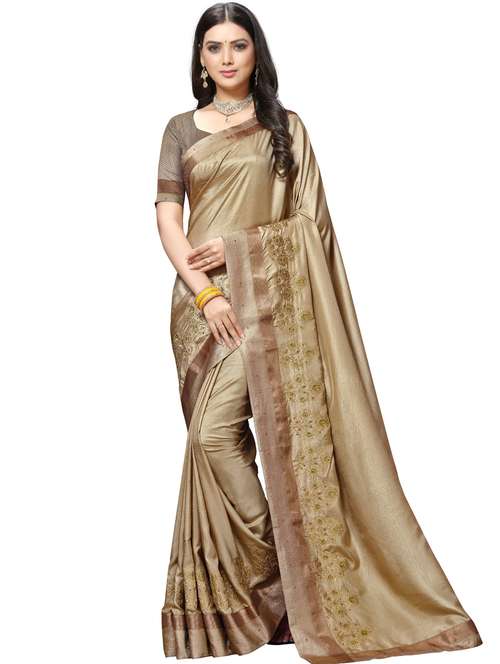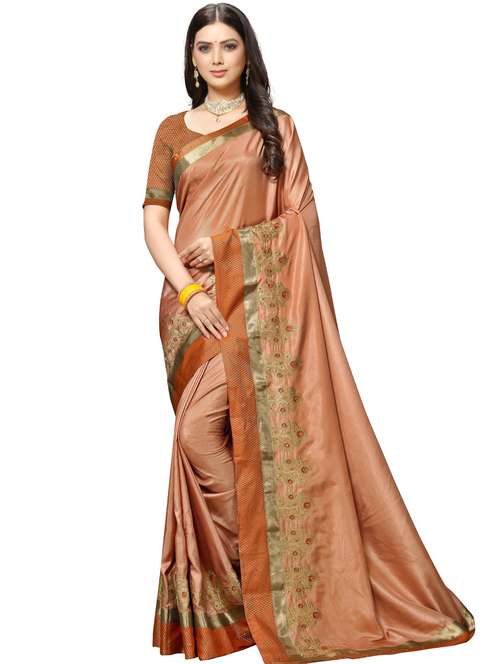 Rekha Maniyar presents you this amazing Brown coloured matka silk creased fabric saree with zari and thread emboridery wrok on it . Embellished with diamond work and studded with Jacquard border and brocade blouse this saree is such an appeal for all your ocassional needs . Literally noone would want to leave this deal , So grab one of these lovelies for your wardrobe collection !