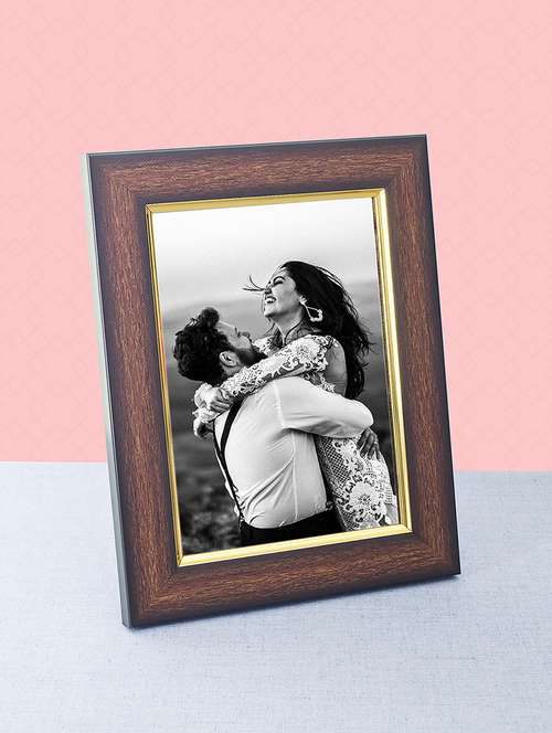 wooden brown golden border table photo frame