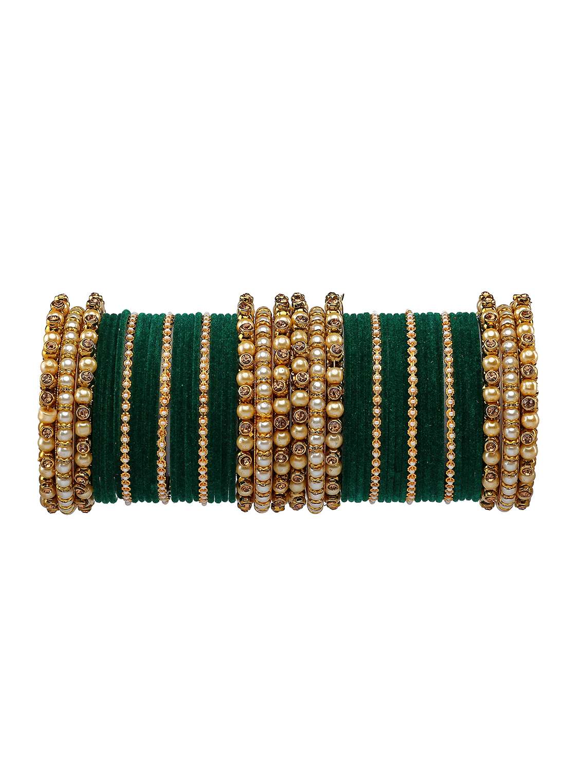 - » rijoli pearl and crystal stone metal bangle set (pack of 50 )