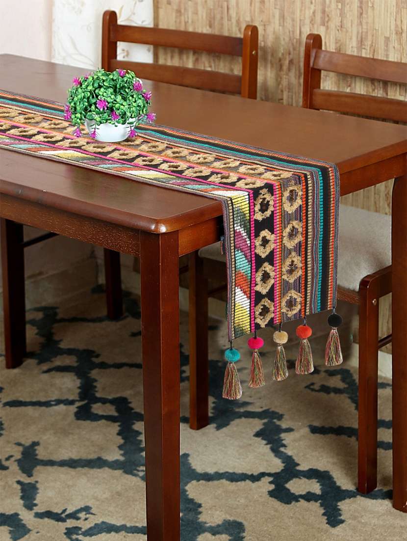 Tribal Collection by Mezposh : Brown & Multi Acrylic Jacquard 6 Seater Table Runner with Tassels (30x180cm)