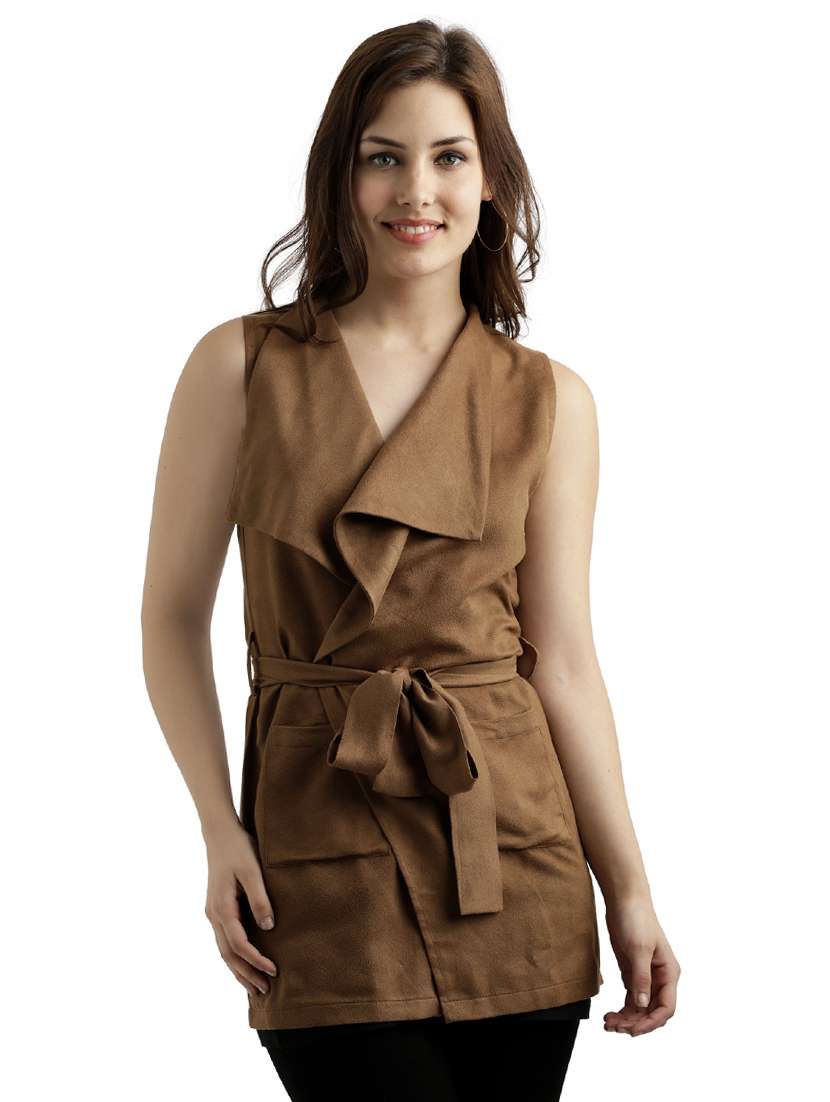 - » brown solid wrap jacket