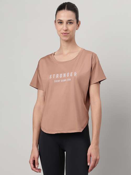 - It’s definitely not okay to be boring! So, are you ready to take things a tad bit unconventionally? Wear your tees in chest print types for (active wear occasions and that too in polyester material.