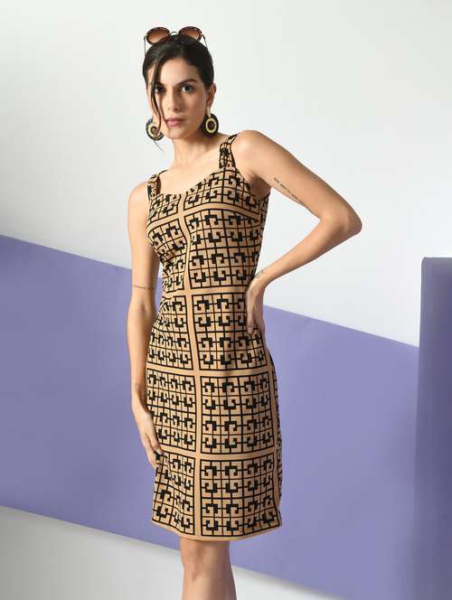 brown polyester sheath dress
