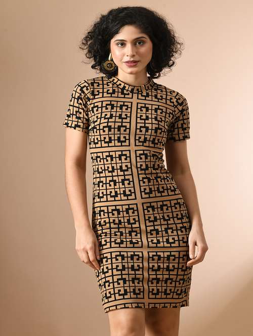 beige polyester bodycon dress