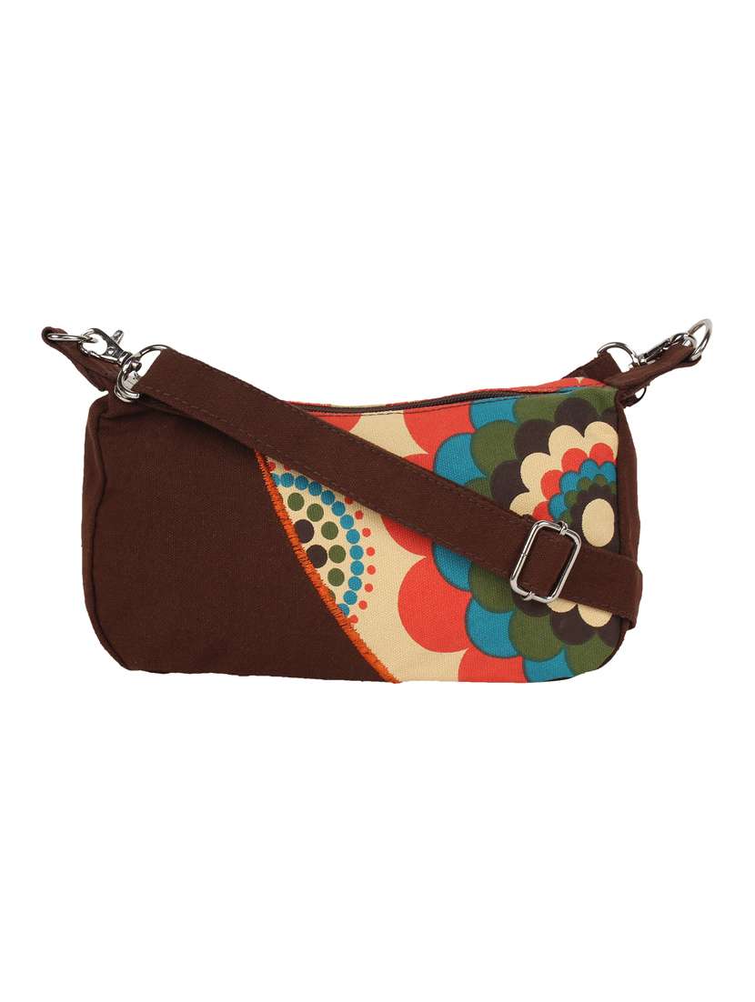 - » brown,multi-colored canvas sling bag