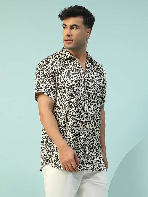 men animal printed short sleeve regular fit casual shirt