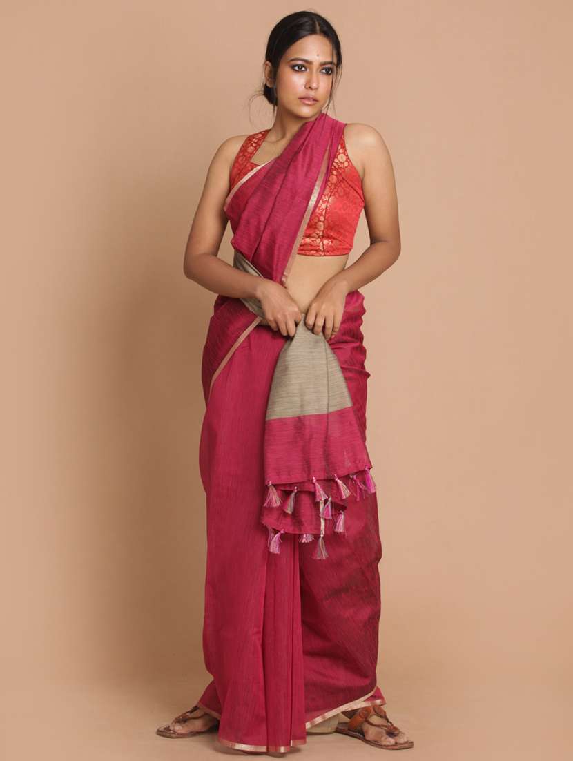 - » women solid plain saree with blouse