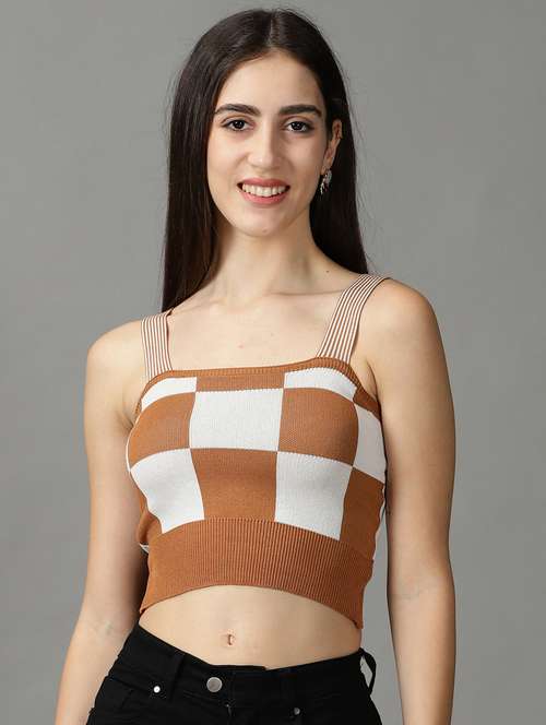 - Look trendy wearing this top from SHOWOFFFF and get this awesome collection in brown colour.
