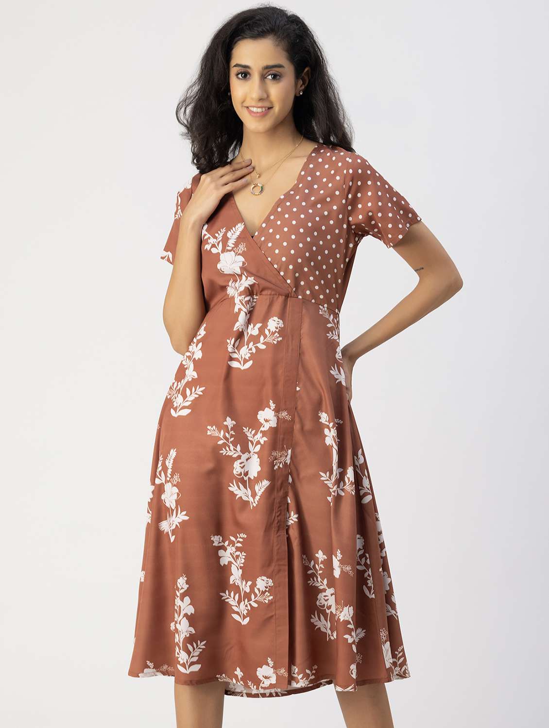 - » women brown floral printed a-line dress