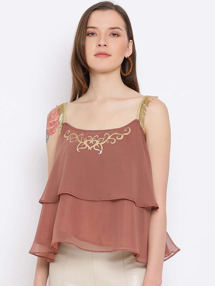 - » women embellished shoulder strap layered top