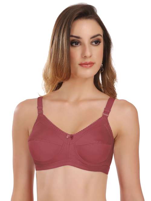 Featherline Poly Cotton Non-Padded Full Coverage Women's Minimizer Bra. The M-frame, full-support bra is crafted with poly cotton fabric. Its straps are centrally aligned ensuring a comfortable feel. The bra is non-wired and prevents any discomfort. The bra provides full coverage and excellent conical shape with its seamed cups. The reinforced seam, broad side wings and U-shaped back offer additional support. The broad back band and brushed elastic give a smooth and soft feel. Its underbust is designed with imported elastic. The high centre gore and a cute bow in between add to its style.