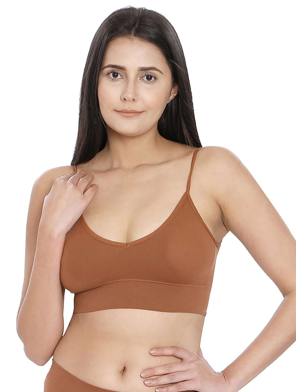 women brown polyamide sports bra