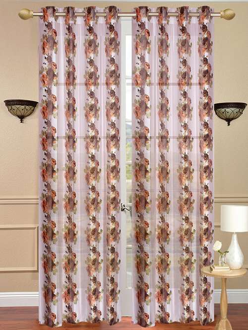 - » homefab india set of 2 tissue floral semi-transparent brown window curtain - 5 ft