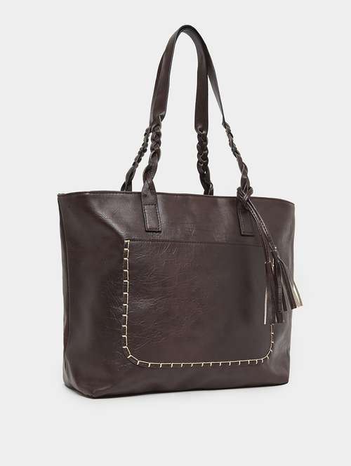 - Expand your bag collection with brown shades of totes handcrafted with unique designs having spacious structure to fit in all your essentials.