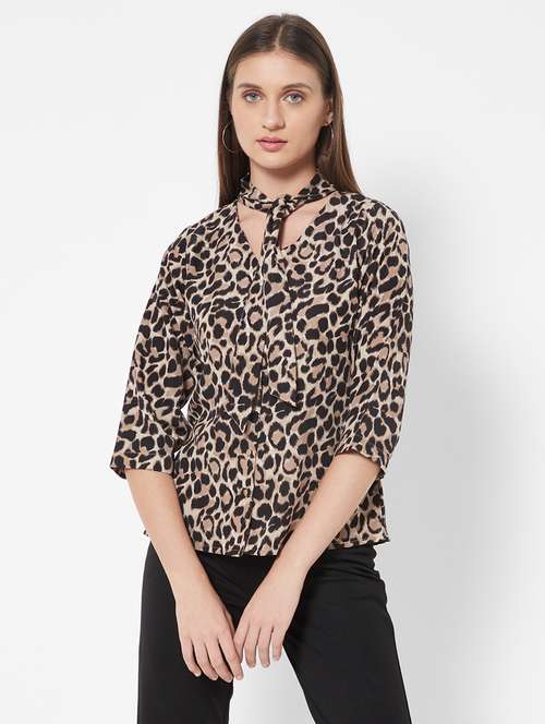 tie up neck animal print top