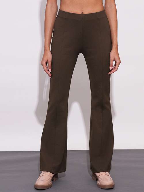 - » globus women brown stretchable mid-rise workwear bootcut treggings