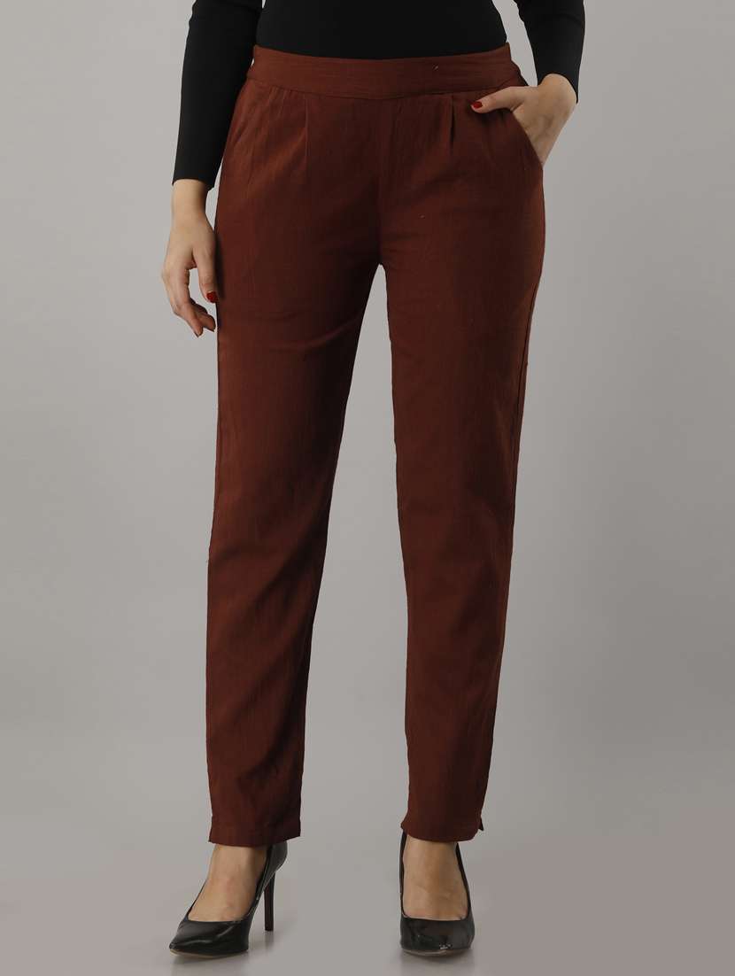 women solid mid rise cigarette pants