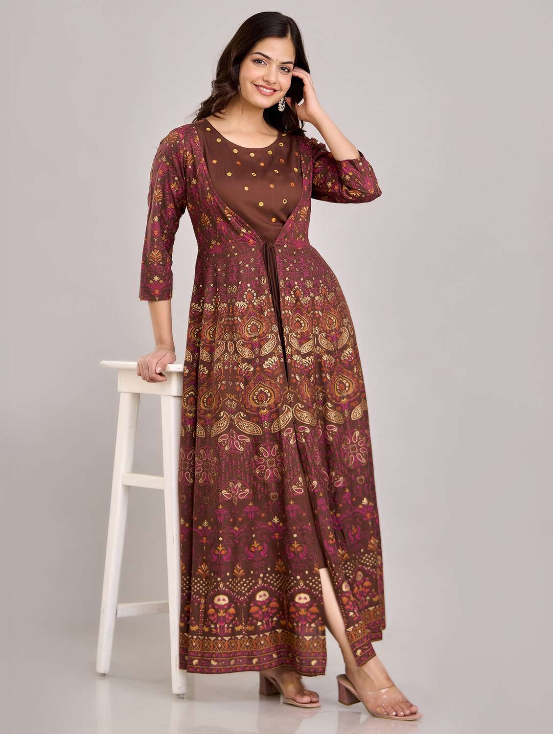 women printed three quarter sleeve ethnic dress