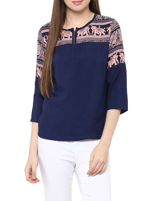 - Opt for this top made up of rayon material and get it in a varied neck design.