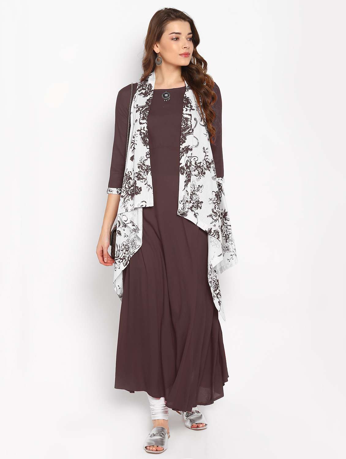 a-line kurta with printed jacket