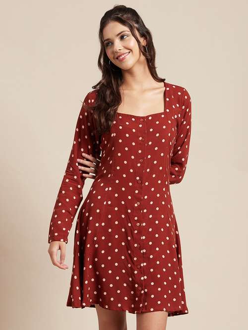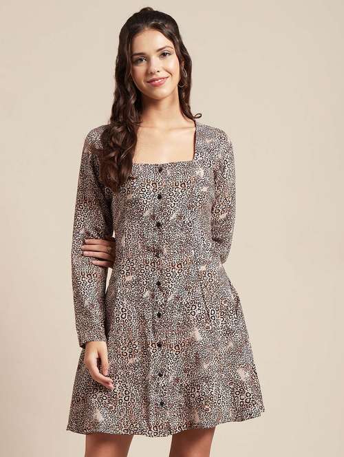 - Looking for some awesome collection of dresses? Well, lay your hands on this dress from Moomaya and also get the option of choosing from brown colour.