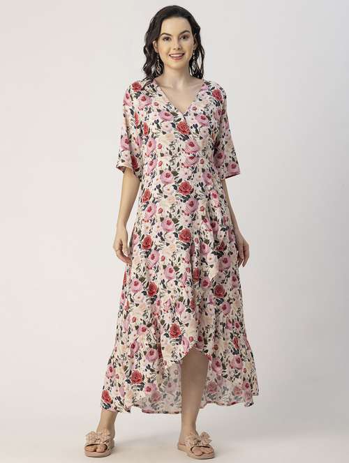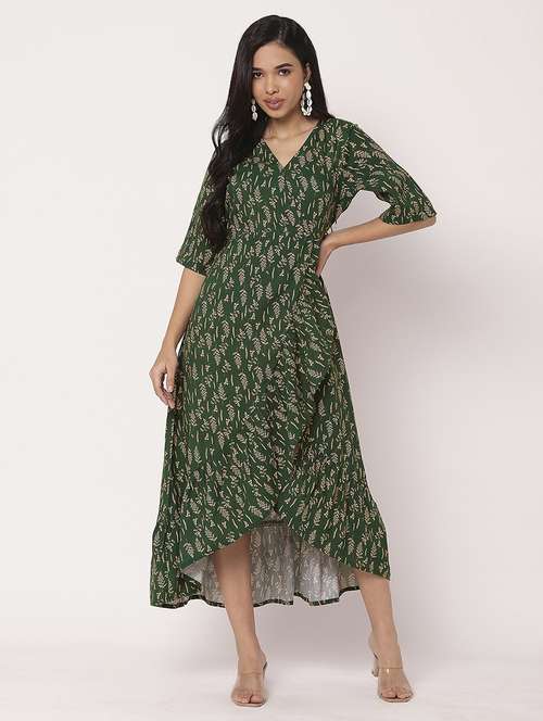 - Dress up in a soothing pattern and don this dress made of rayon material.