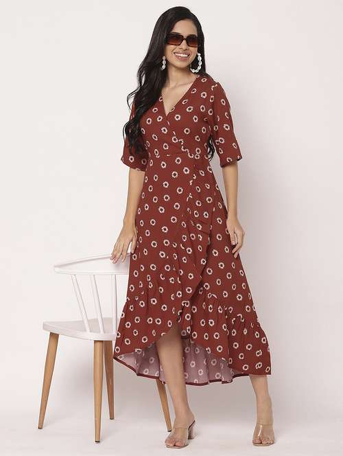 - Looking for some awesome collection of dresses? Well, lay your hands on this dress from Moomaya and also get the option of choosing from brown colour.
