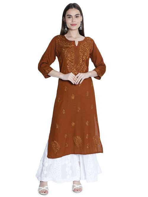 brown rayon straight kurta - 18369009 -  Standard Image - 1 brown rayon straight kurta - 18369009 -  Zoom Image - 1
