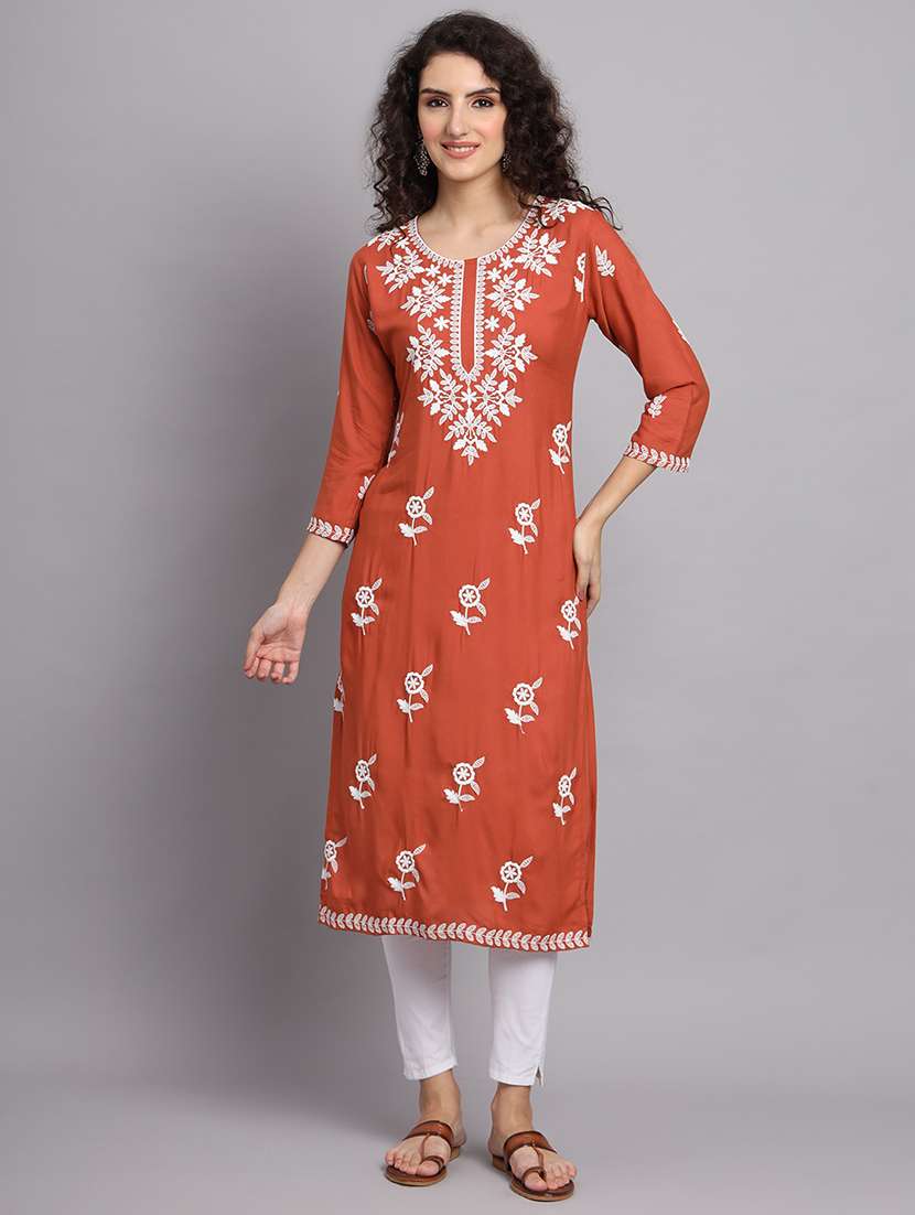 Vairagee Rayon Kurta With Lucknowi Chickenkari Work
