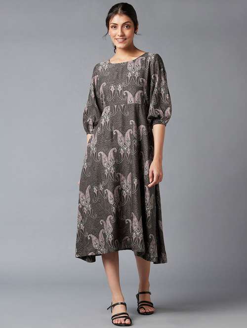 brown printed flared ethnic dress