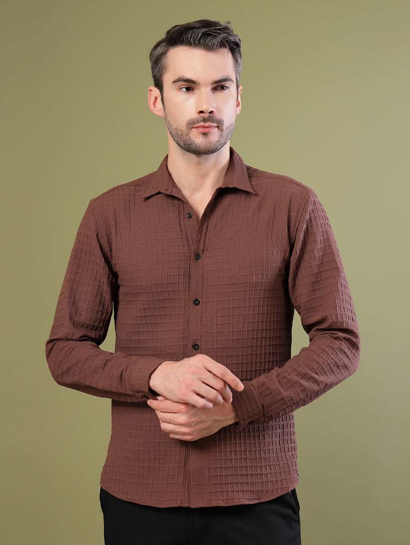- » men long sleeves textured casual shirt