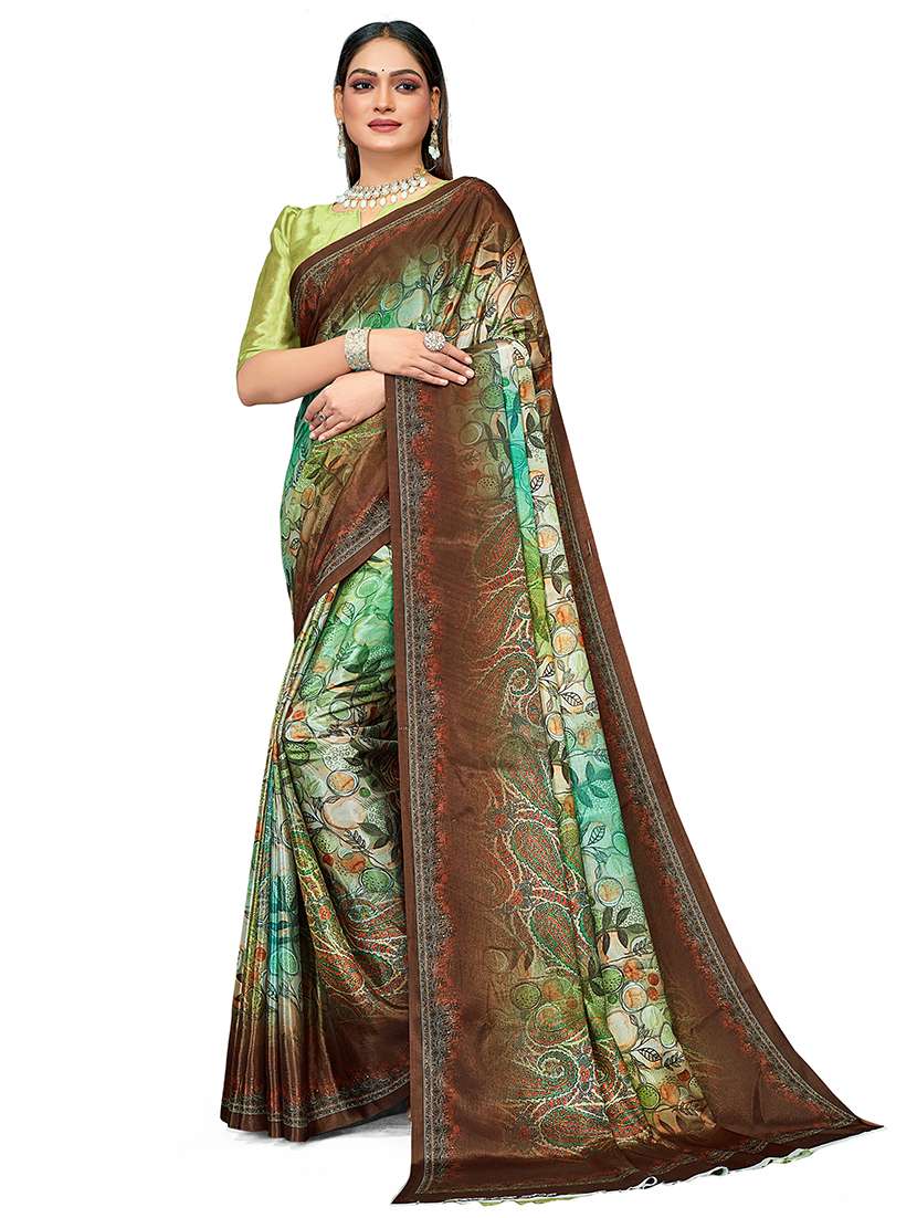 women printed satin saree  with blouse - 21274573 - Very Small Image - 1