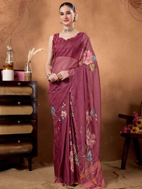 women floral printed saree with blouse - 22083017 - Very Small Image - 1