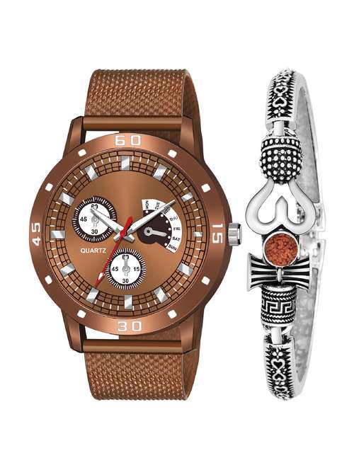 - » kajaru new fancy stylish - brown pu strap & mahadev bracelet combo watch