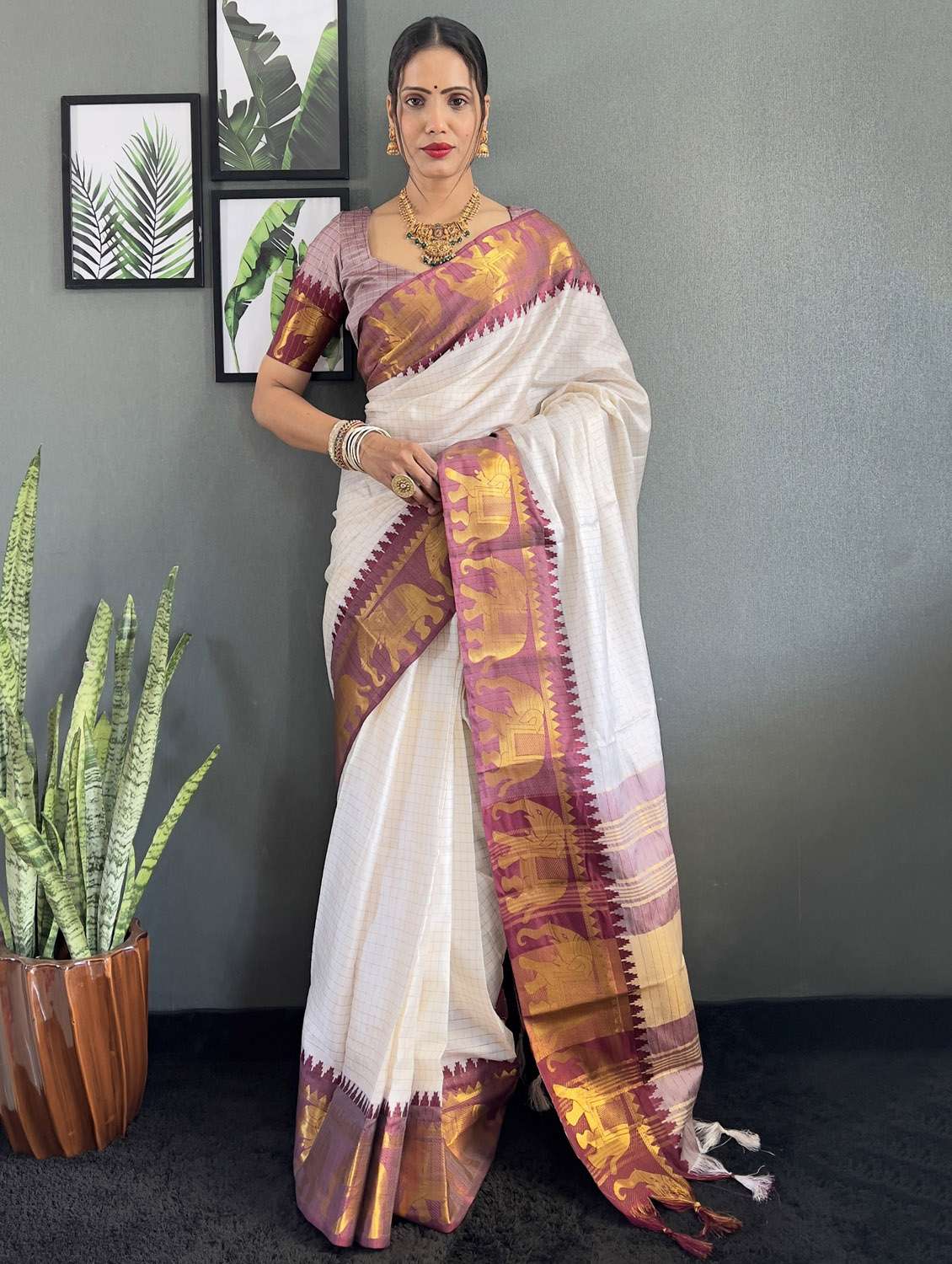 Color : White Brown, Made from high quality Banarasi Silk Fabric Checkered Ready To Wear Saree, giving the Ready To Wear Saree a stunning look and feel.If you're looking for a beautiful Ready To Wear Saree to wear to a special occasion, this women's Banarasi Silk Checkered Ready To Wear Saree is sure to impress. With a length of 5.25 meters and an additional 0.80 meters of Cotton Silk Checkered unstitched blouse material, this Ready To Wear Saree offers ample fabric to create your perfect look.Available in various colors, this Ready To Wear Saree is perfect for weddings, parties, and other special occasions. Order now and make a fashion statement with this beautiful Ready To Wear Saree.